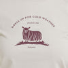 A grönlandi juh képével és a "Dressed up for cold weather" szlogennel ellátott bézs póló stílust és szórakozást kölcsönöz. A puha pamut, a kényelmes szabás és egy csipetnyi humor tökéletes kombináció a rétegezéshez vagy egy könnyedebb öltözethez.
