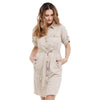 Az ESNA ruha expedíciós hangulatot áraszt, mégis könnyedén felveheted a város forró utcáira. Kellemes tapintású, karcsúsított szabású, így szép sziluettet biztosít, gombos rögzítés, gallér, rátétes zsebek a mellkason, zsebek hajtókával az oldalán és természetesen textil öv. 100% pamut, vászonkötés, súly: 170 g/m2.